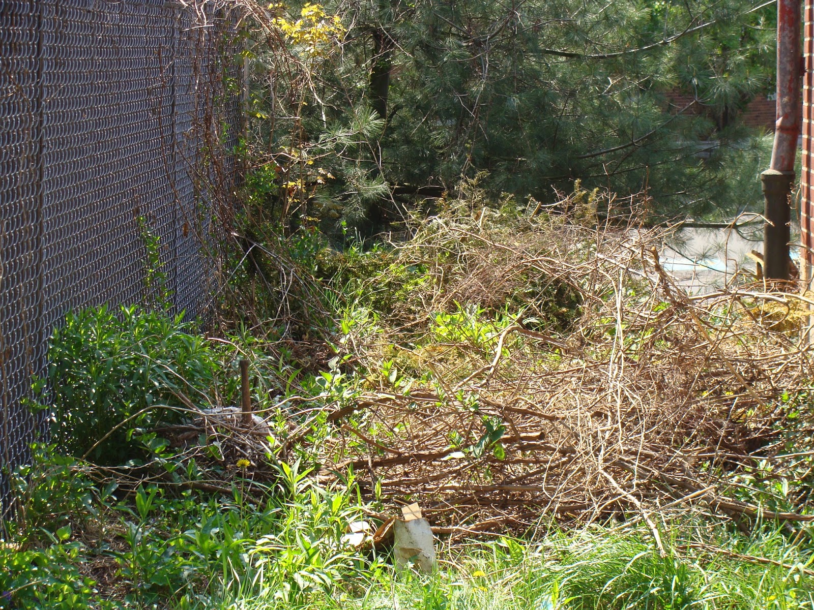 This was the sunny side of the house about two weeks after I bought it. I already removed most of the dead Yews, Poison Ivy, and thistle.